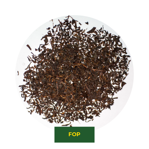 FBOP (Flowery Broken Orange Pekoe)Broken leaf with golden tips; aromatic and flavorful, balancing body and brightness.