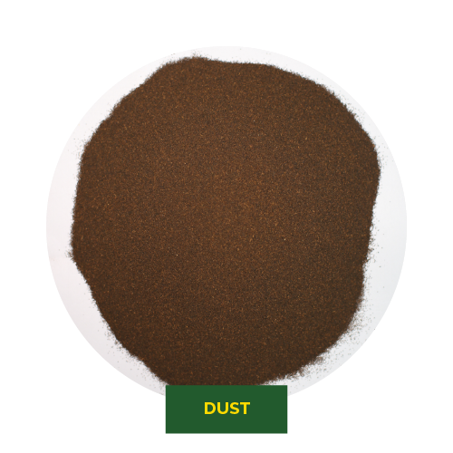 DUSTThe smallest grade; brews instantly with intense color and robust flavor, favored in strong tea blends.