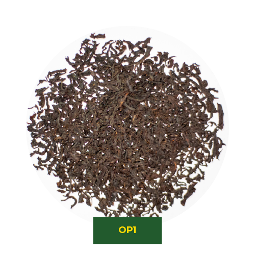 OP1 (Orange Pekoe 1)Long, wiry leaves with a delicate aroma and smooth, light liquor. Premium whole-leaf quality.